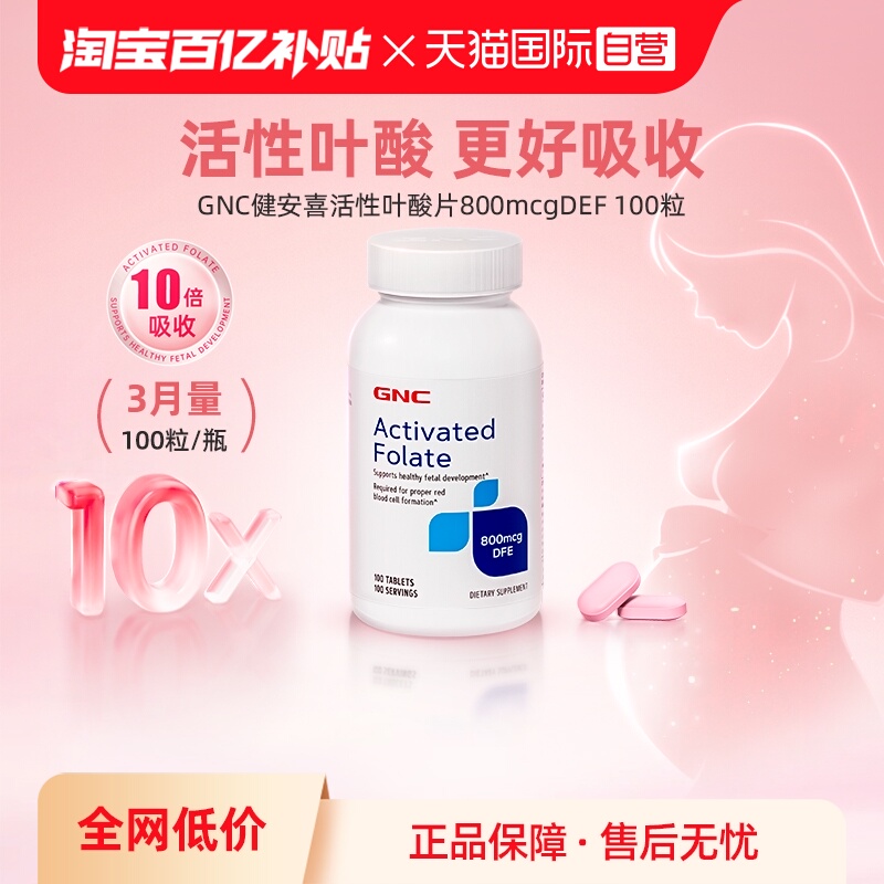 【自营】GNC健安喜活性叶酸片孕妇专用备孕男女必备好物100天量