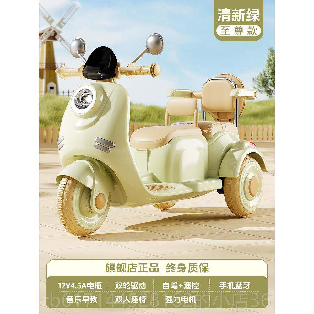 儿童电动摩托车三轮车男女孩电动车小孩可坐人充电双人遥控玩具车