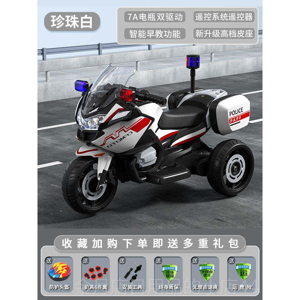 儿童电动摩托车三轮车男女孩充电遥控宝宝小孩童车可坐人电瓶警车