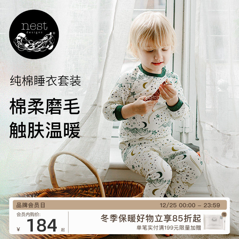 Nest Designs儿童睡衣套装男女童宝宝纯棉家居服秋冬长袖长裤套装