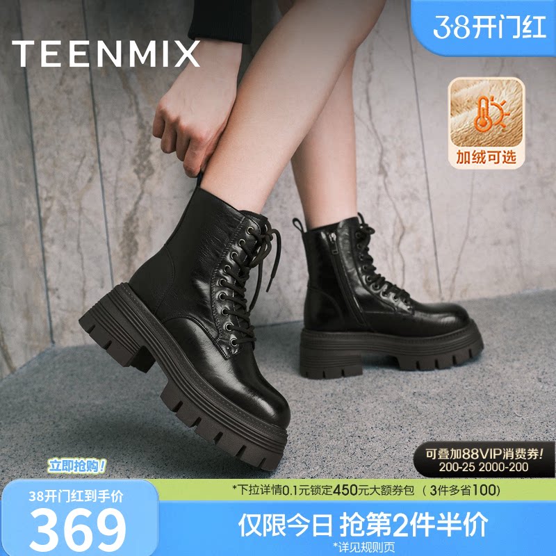 TATA他她靴子女鞋冬季加绒英伦工装靴厚底马丁靴羊皮短靴WXB06DD5