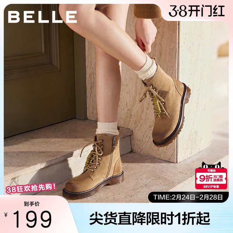 百丽复古绒面英伦风马丁靴子冬季新款女款牛津底休闲短靴BCX64DZ5
