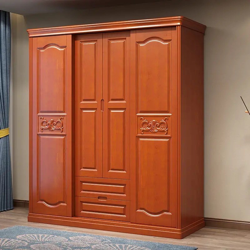 4I乡村美式衣柜实木4门复古现代简约四门大衣橱家用卧室家具经济