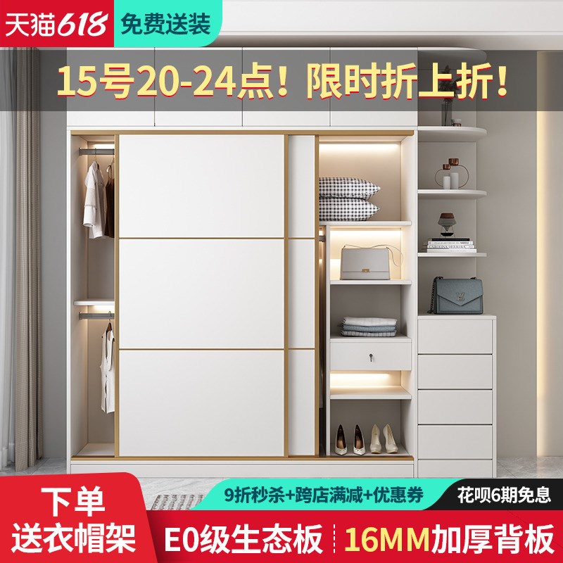 BTV4轻奢推i拉门衣柜实木生态板家用卧室木质柜子经济型滑移门衣