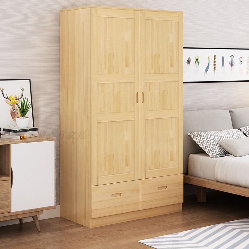全实木衣柜松木两门小户型定制2门4衣橱卧室储物柜子简易儿童原木
