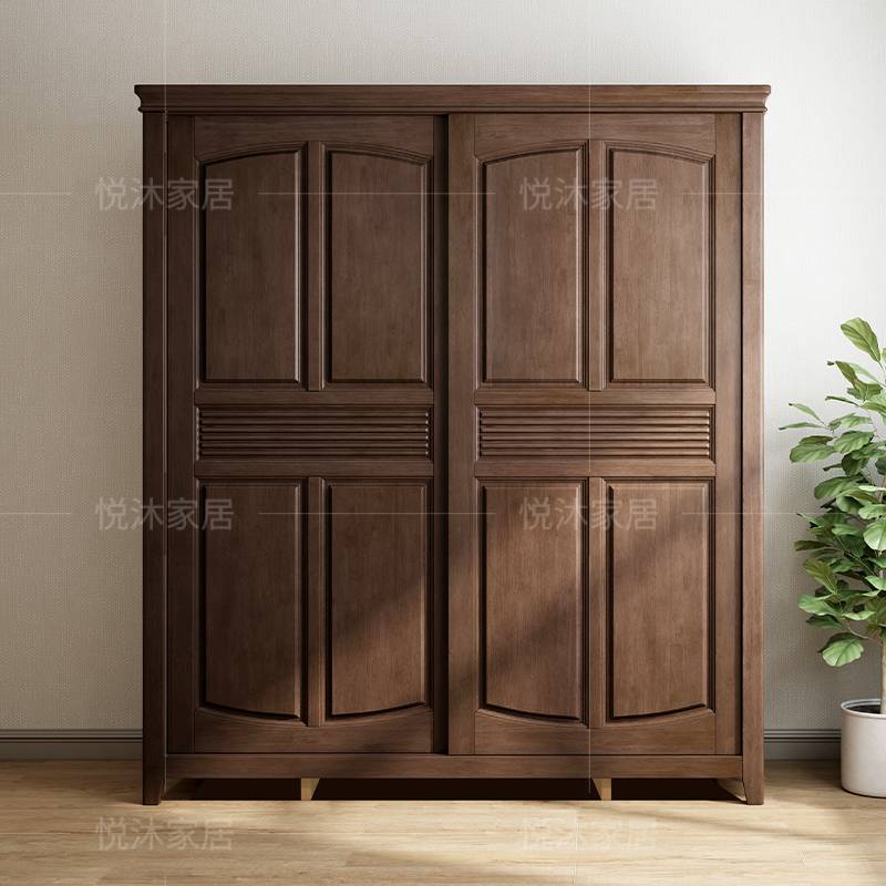 4I美式乡村实木衣柜现代简约推拉滑移门两门衣柜复古衣橱卧室木家