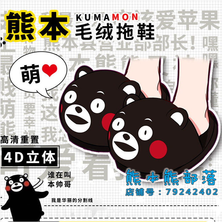 新款熊本熊周边日本kumamon可爱男女卡通动漫室内保暖毛绒棉拖鞋