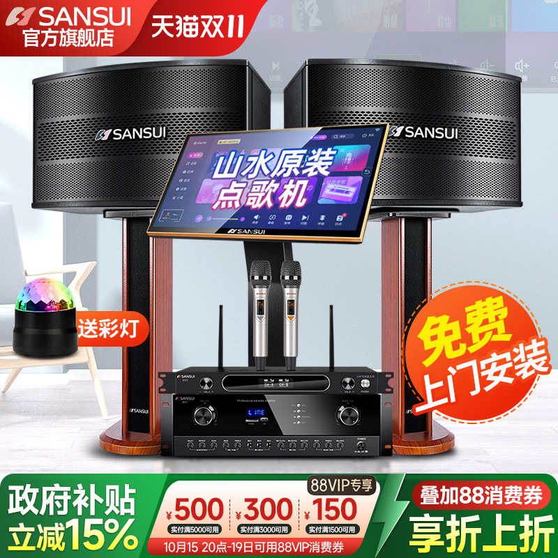 山水Q085家庭KTV音响套装点歌触摸屏一体机家用卡拉ok电视K歌音箱