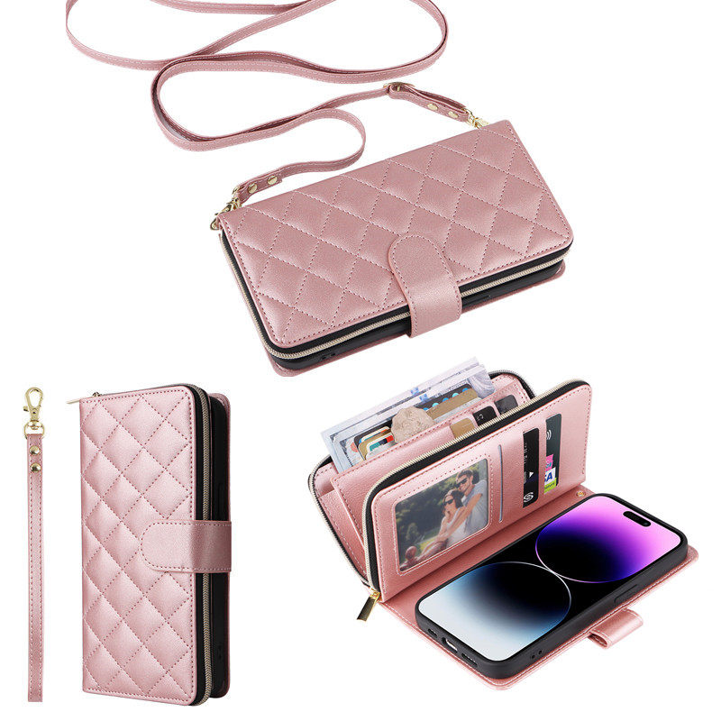 奢华拉链零钱包适用于三星s23手机壳s25+斜挎挂绳s22防摔翻盖s24ultra高级感皮质S3FE小香风S24保护套S26PLUS