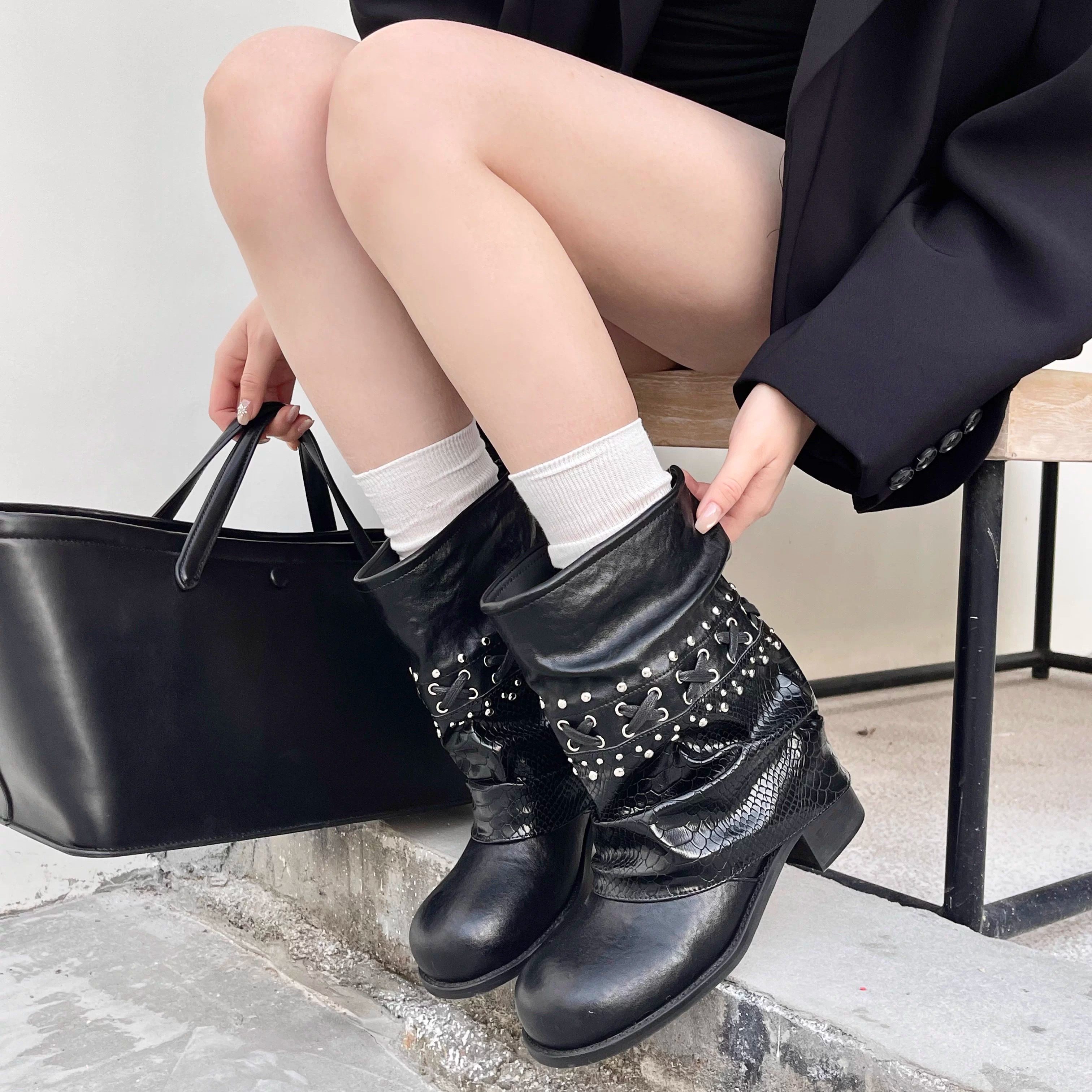 - 靴女春秋中筒靴