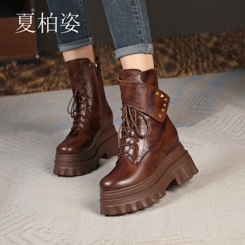 - 内增高短靴厚底真皮