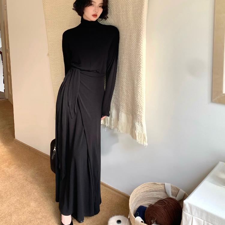 素芭优雅气质收腰系带连衣裙女复古时尚休闲百搭高级感长裙SF0688