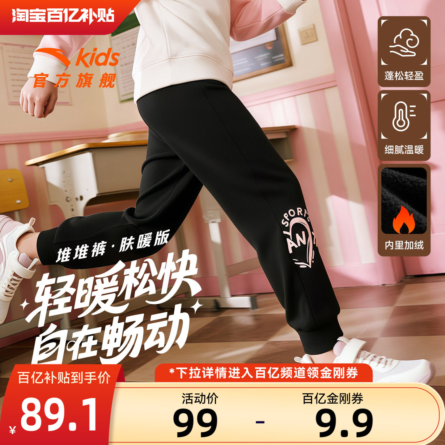 安踏童装女童加绒裤子运动裤秋冬款2025冬季新款儿童冬装长裤卫裤
