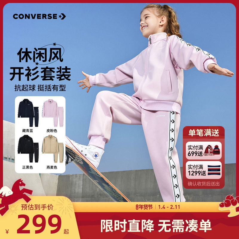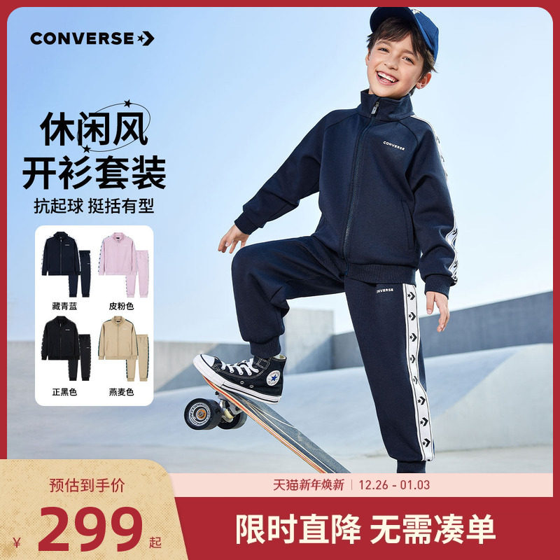 匡威童装儿童套装男童卫衣开衫裤子2件套2025冬季新款女童运动装