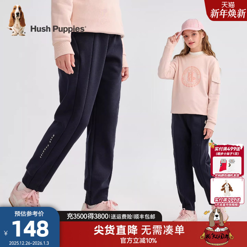 暇步士童装女童一体绒长裤25冬装新品中大童运动裤儿童保暖厚裤子