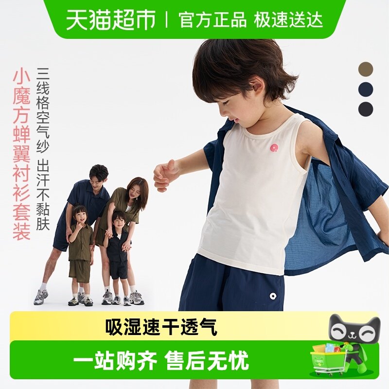 Q21小魔方速干衬衫亲子儿童短袖短裤套装男女童运动装亲子装夏季