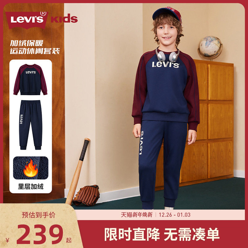 【加绒】李维斯童装儿童套装男童卫衣裤子2025冬季新款女童运动装
