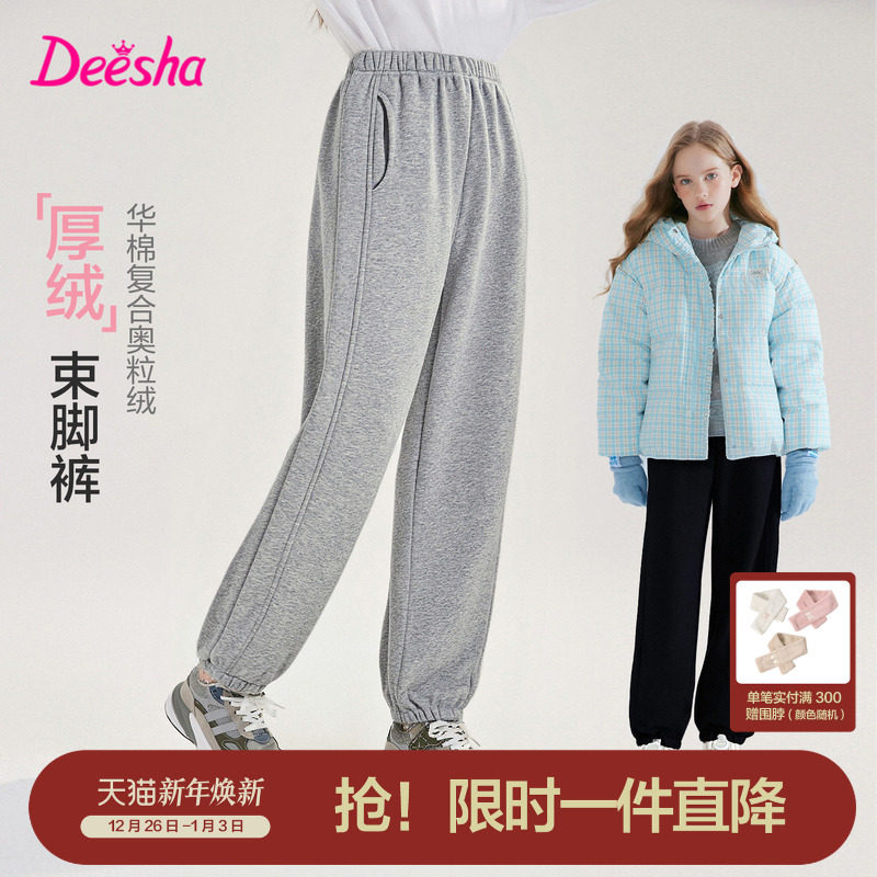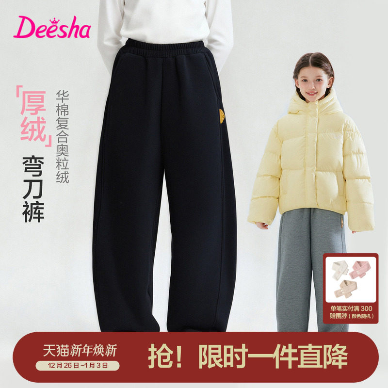 笛莎官方旗舰童装女童加厚运动裤子冬季新款女孩儿童时尚加绒卫裤