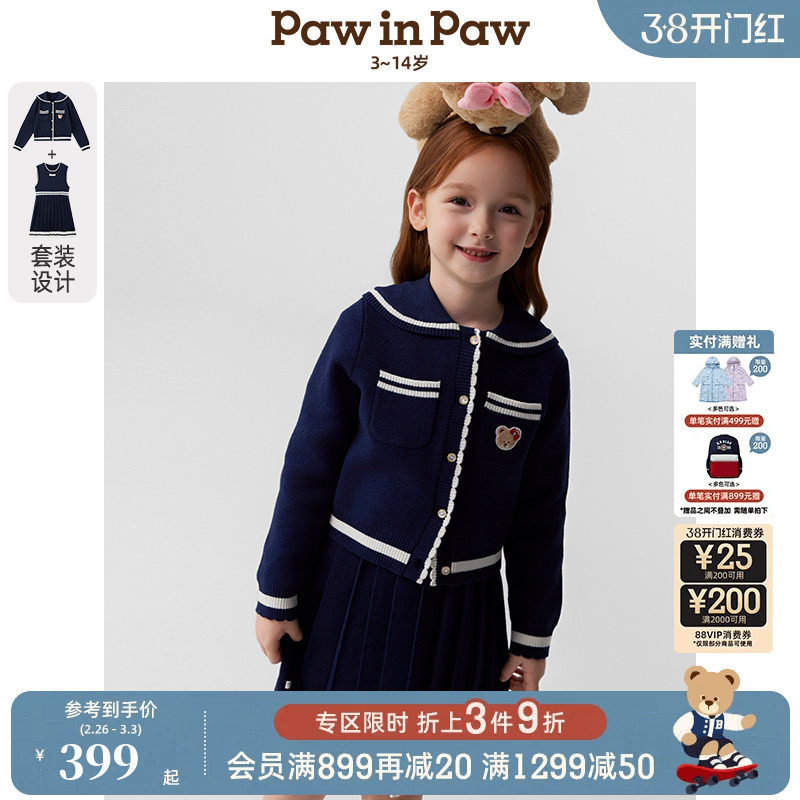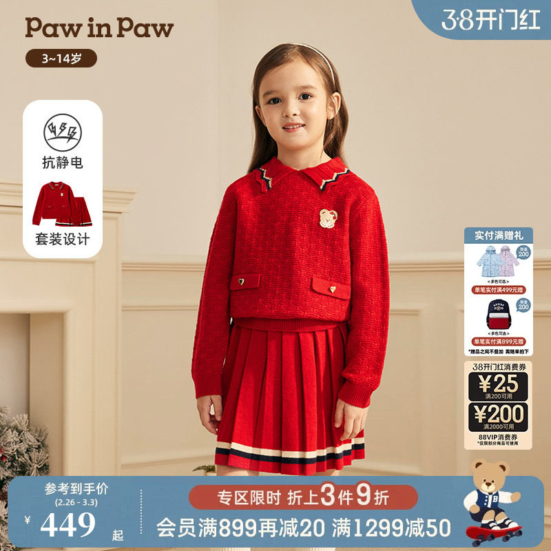 【圣诞】PawinPaw卡通小熊童装25年冬季新款女童套装裙两件套甜美