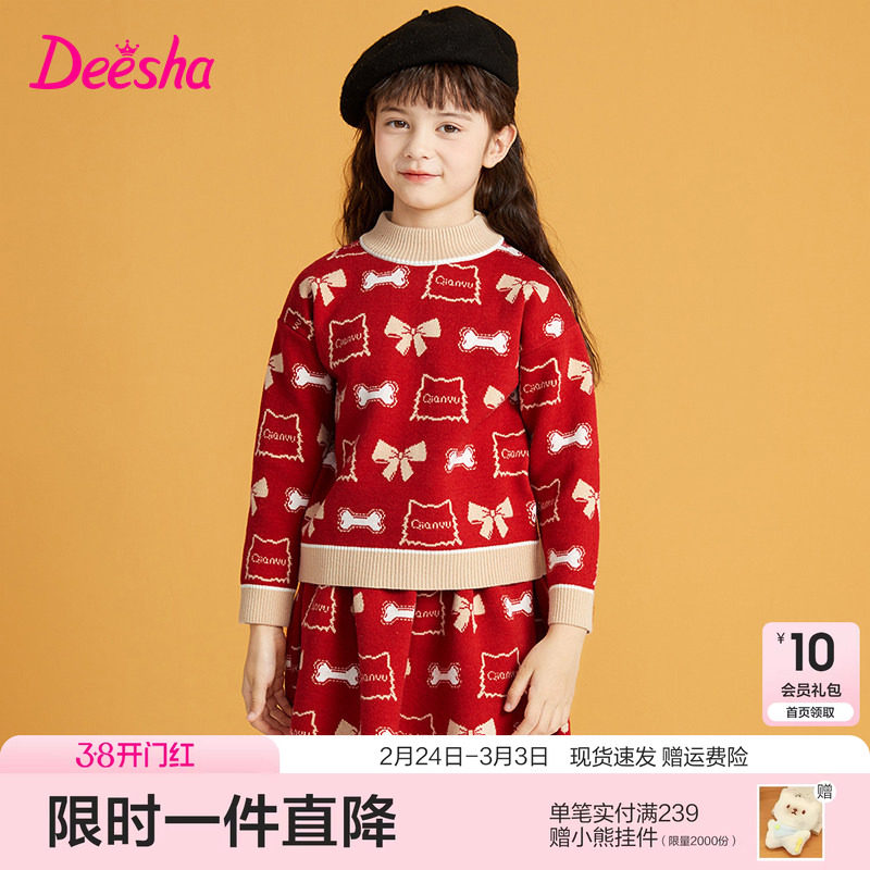 笛莎官方童装女童套装裙冬季新款大童女孩儿童洋气针织香风两件套