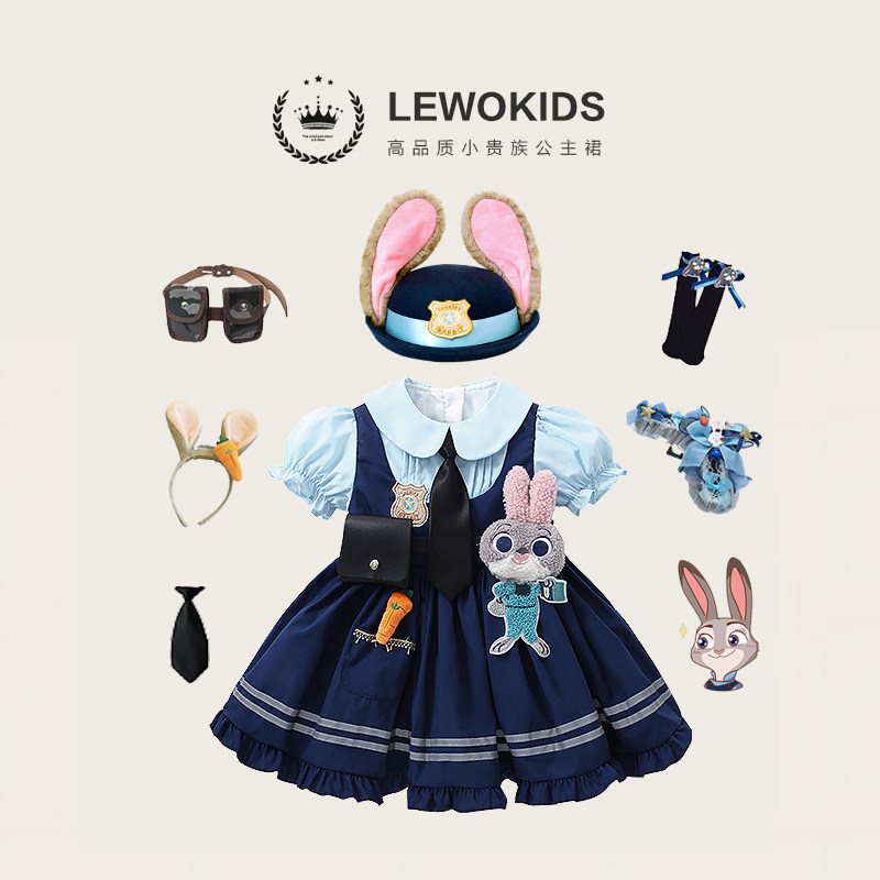 朱迪兔子警官儿童cos衣服迪士尼疯狂动物城春夏女童公主裙子套装
