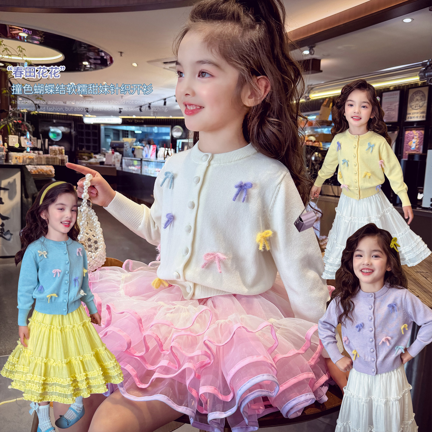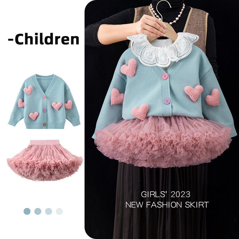 女童套装裙子针织开衫春秋装儿童毛衣2025新款宝宝tutu裙搭配上衣