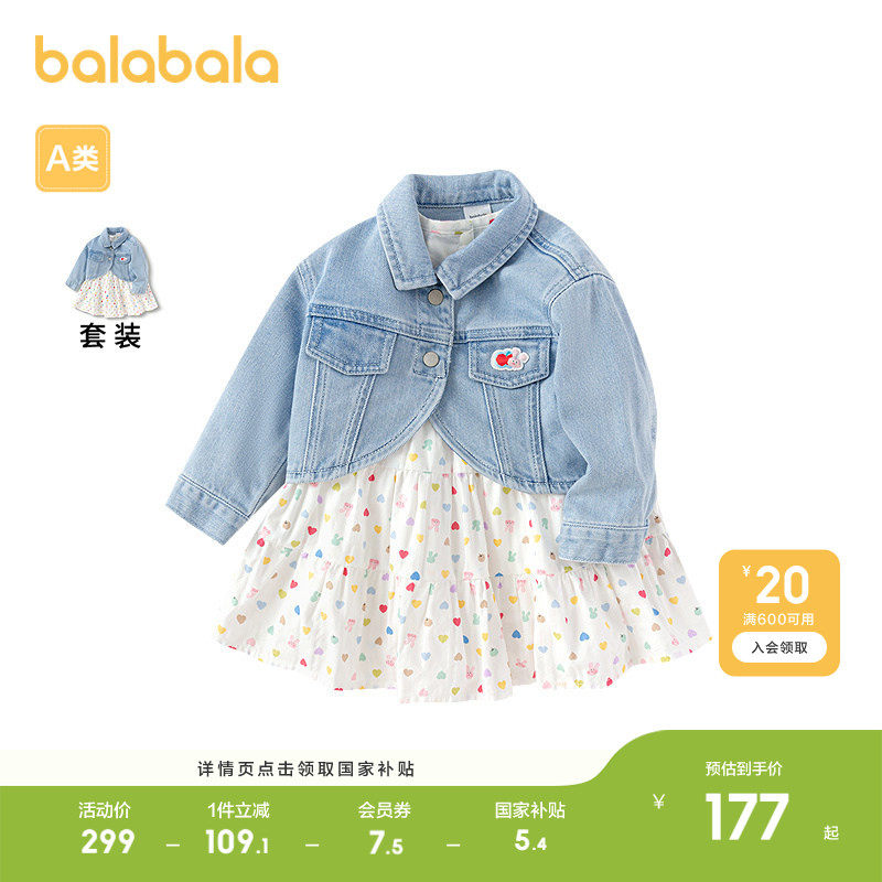 巴拉巴拉童装宝宝女童春装婴儿牛仔两件套裙时尚甜酷满印波点活泼