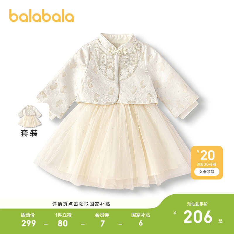 巴拉巴拉童装儿童女童新中式套装网纱蓬蓬裙两件套春新款国风洋气
