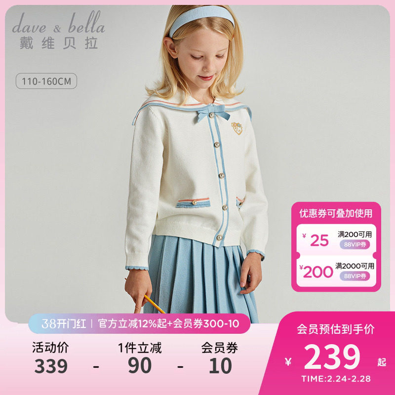 戴维贝拉女童套装裙儿童洋气裙子女孩毛衣针织百褶裙春装新款童装