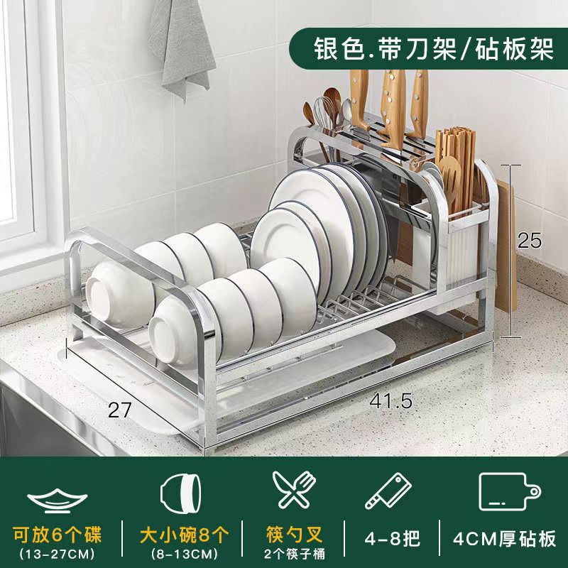厨房加厚304不锈钢碗碟架筷子笼单层碗架橱柜碟架餐盘沥水篮放碗