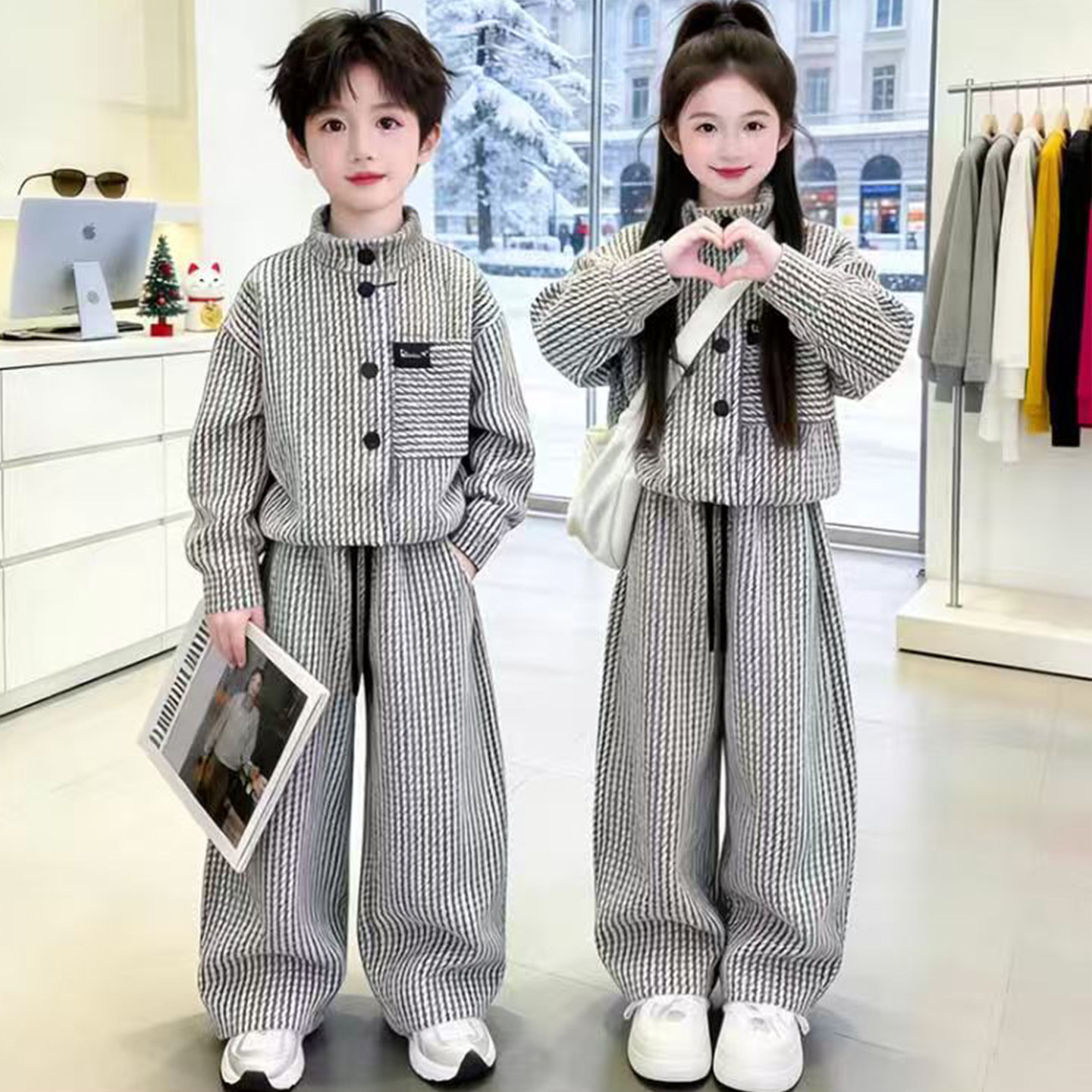 女童2026新款春秋季韩版纹理感时尚儿童男女可穿洋气百搭套装潮酷