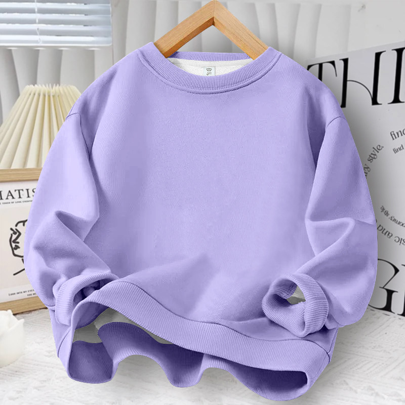 女童中大童加绒保暖卫衣女2025年秋冬季韩版纯色圆领时尚中长款潮