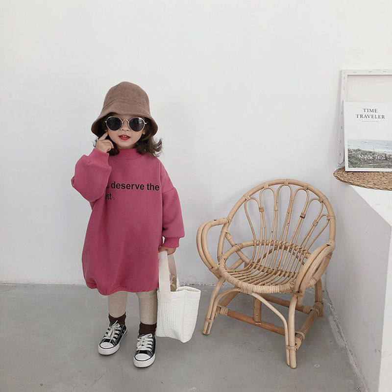 小童冬季上衣女童加绒卫衣裙冬儿童中长款宽松字母加厚连衣裙韩版