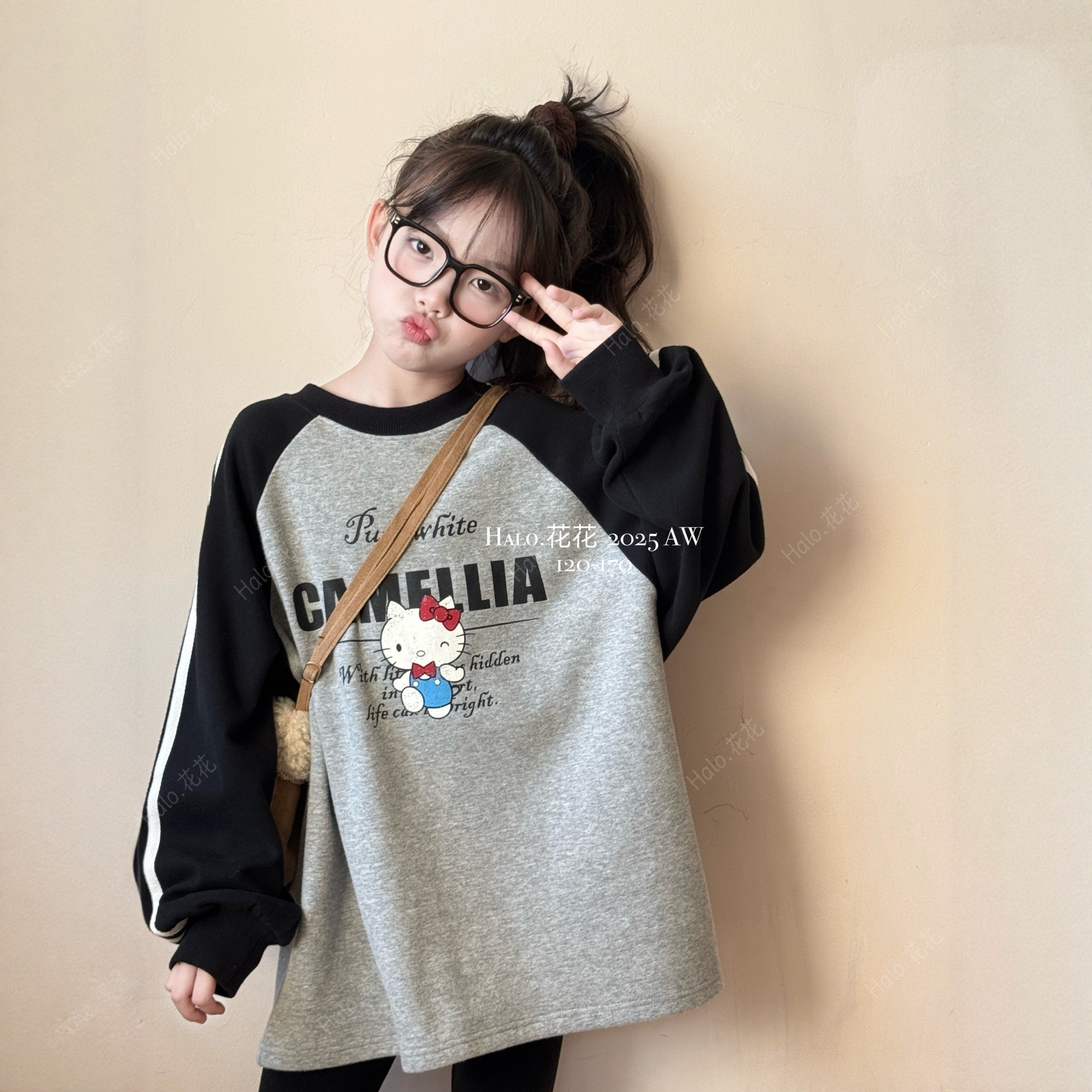 韩版童装2025秋冬女童洋气绒加厚卡通字母卫衣儿童中长款时髦上衣