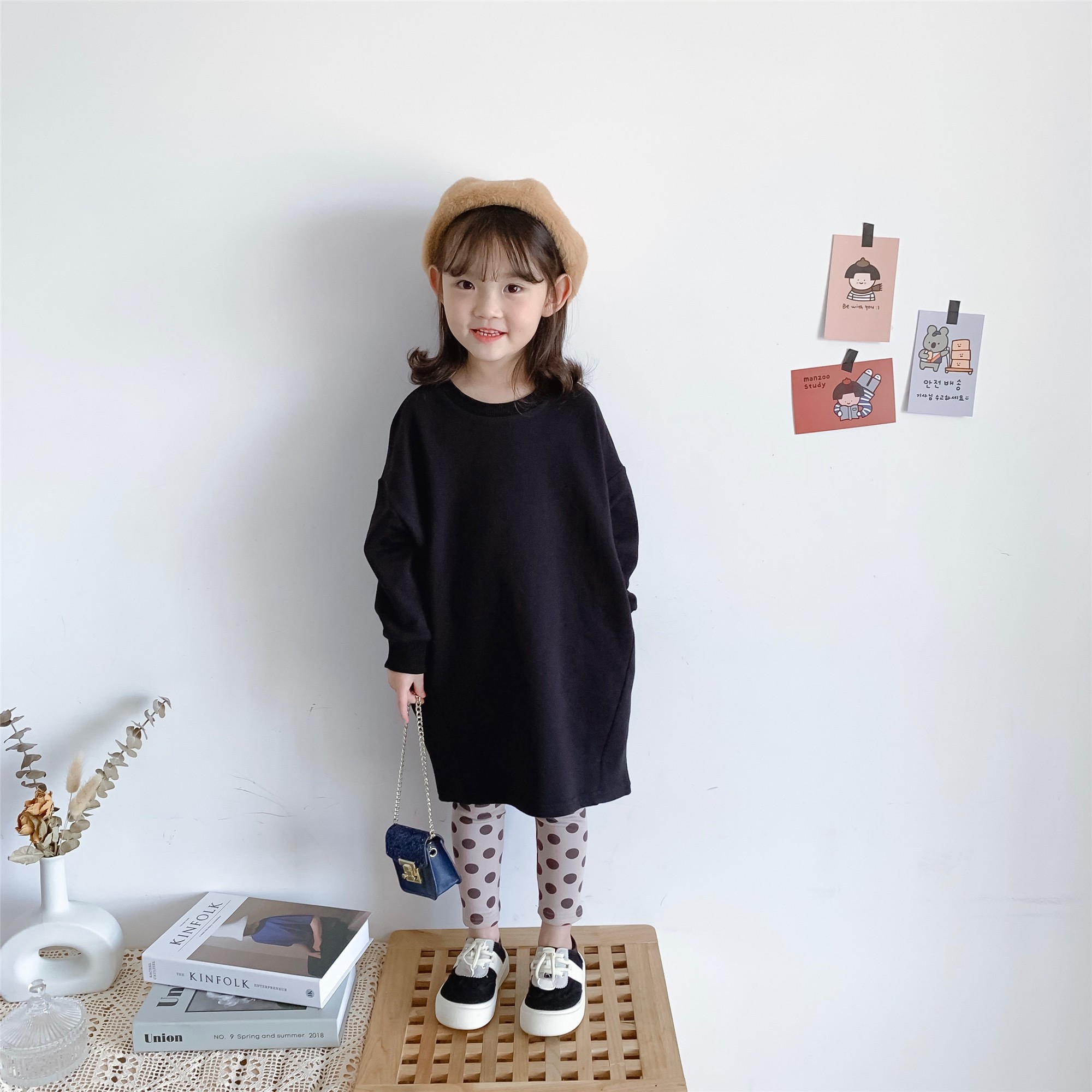 2022春秋韩版全棉纯色女童宝宝时尚简约中长款长袖连衣裙卫衣裙