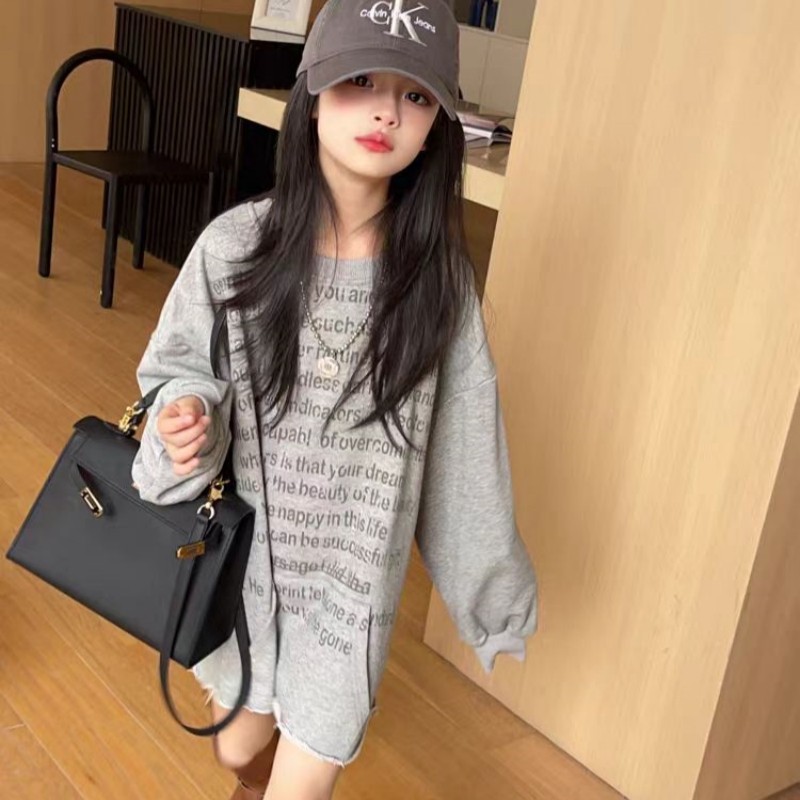 女童卫衣中长款2024春秋新款中大童韩版字母休闲上衣儿童长袖t恤