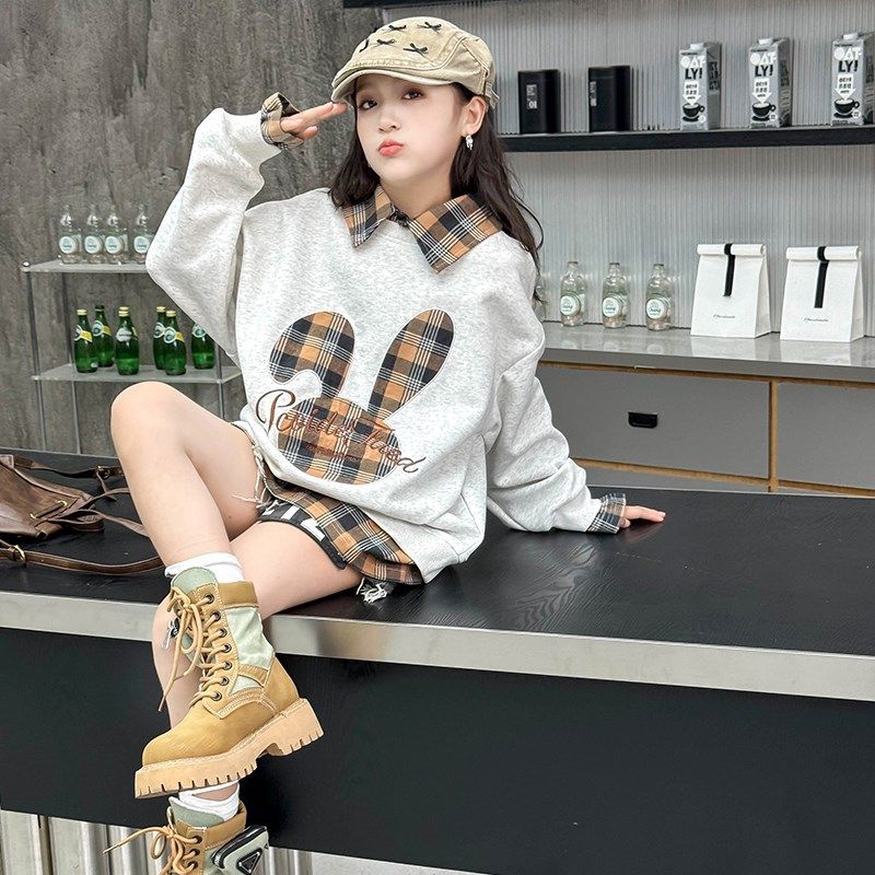 女童卫衣春秋装2025新款女大童宽松韩版中长款假两件上衣女孩衣服