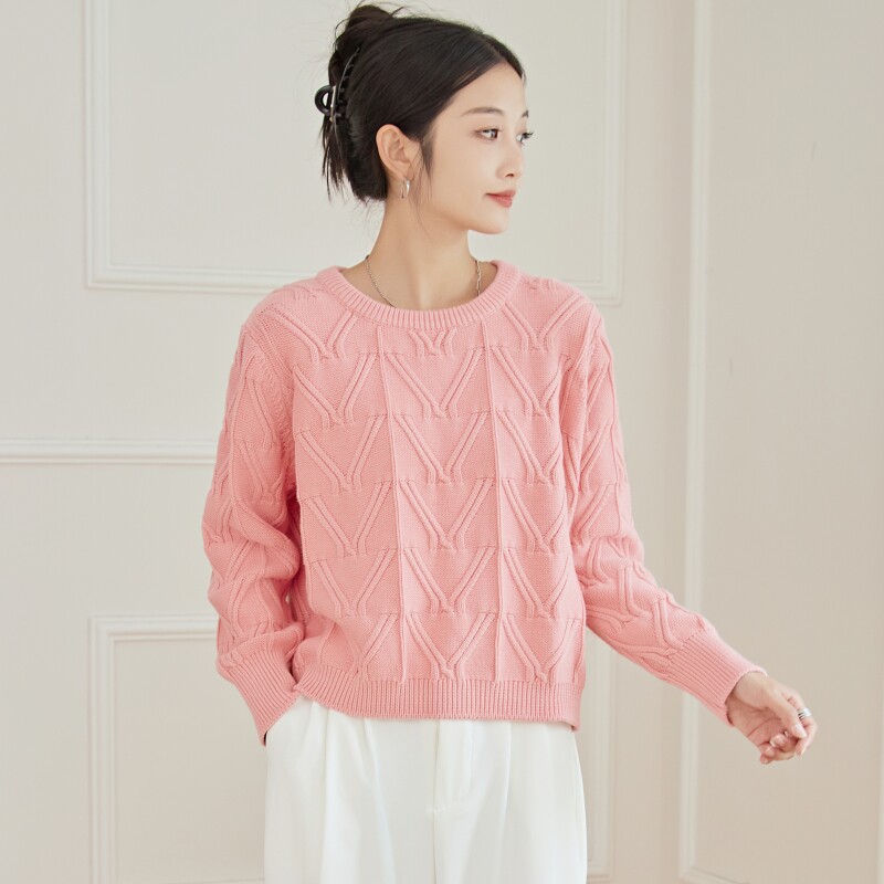 东润莲品牌原创纯棉毛衣春秋短款圆领套头长袖宽松针织衫全棉线衣