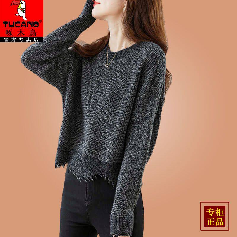 啄木鸟新款毛线衣春秋气质短款小个子毛衣打底衫女宽松针织衫上衣