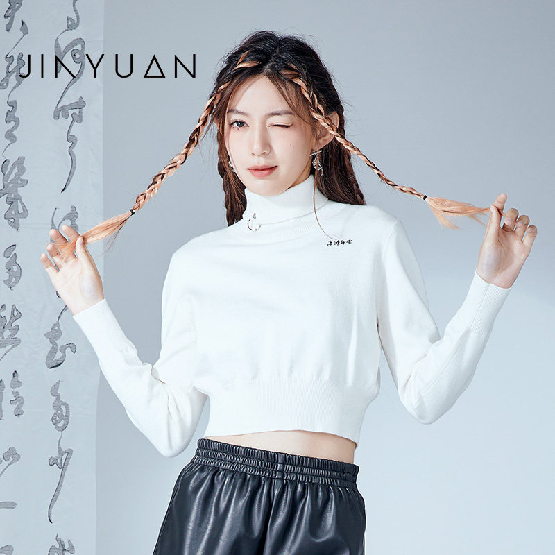 东润莲原创 高腰短款加厚纯棉毛衣 秋冬女半高领套头针织全棉线衣
