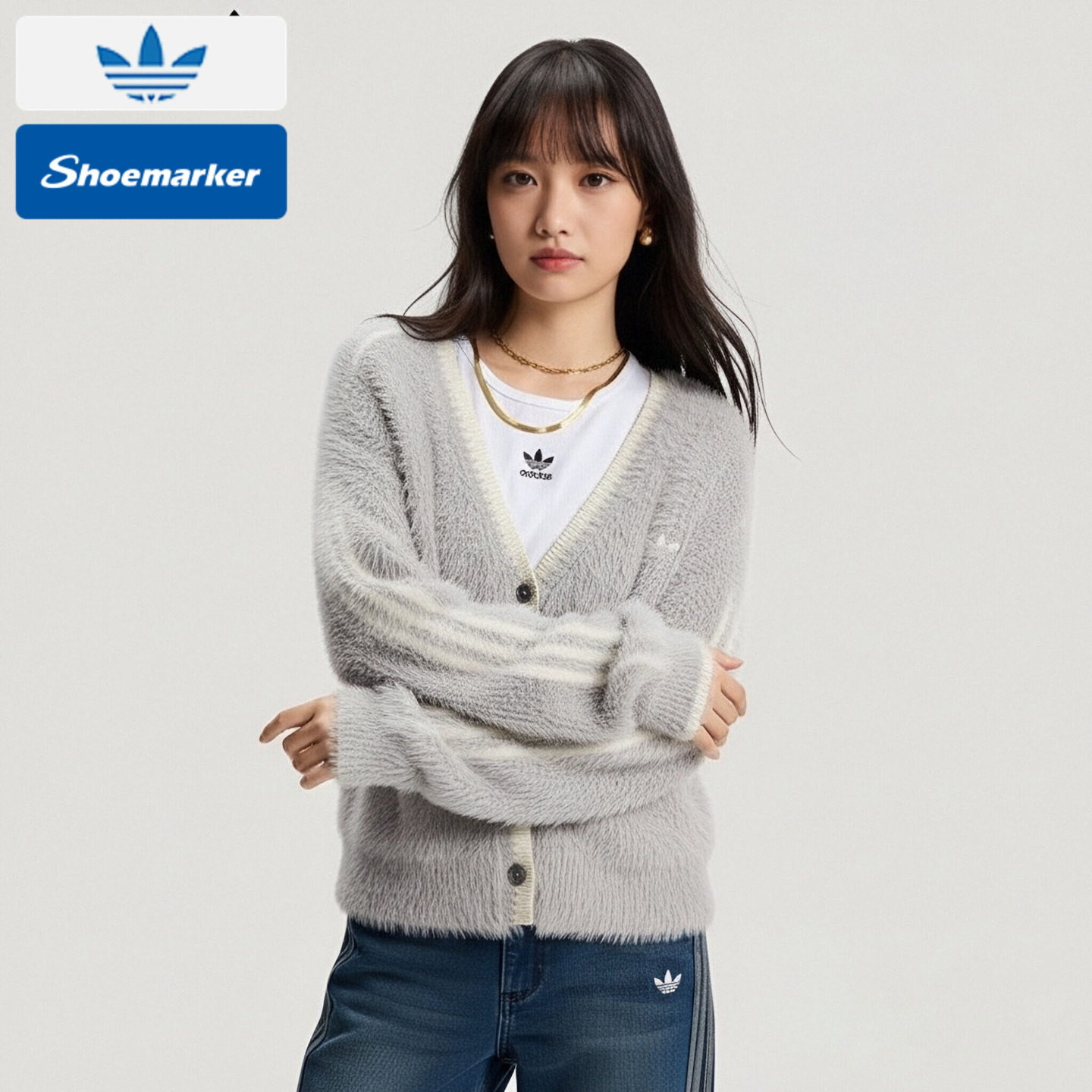 阿迪达斯三叶草毛绒衫短款春季新款时尚潮流小外套外搭线衫KT3170