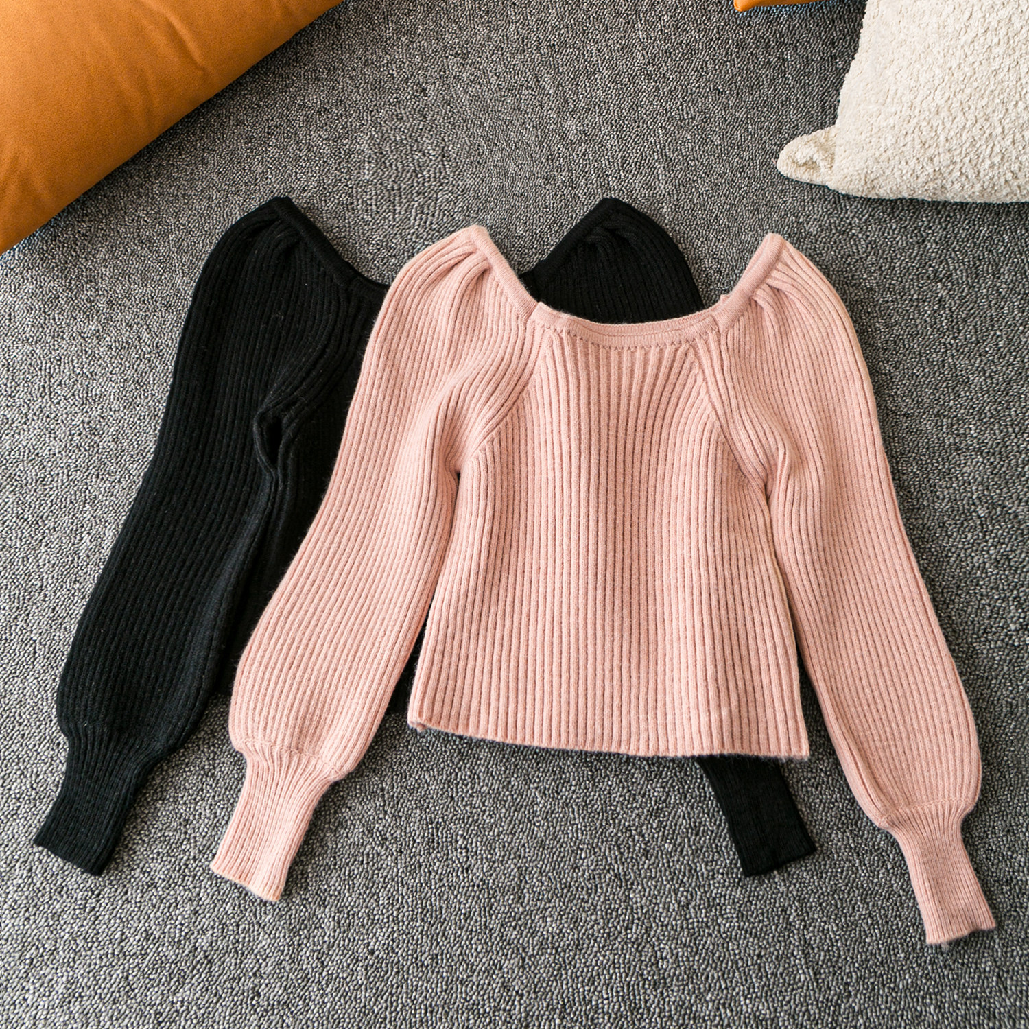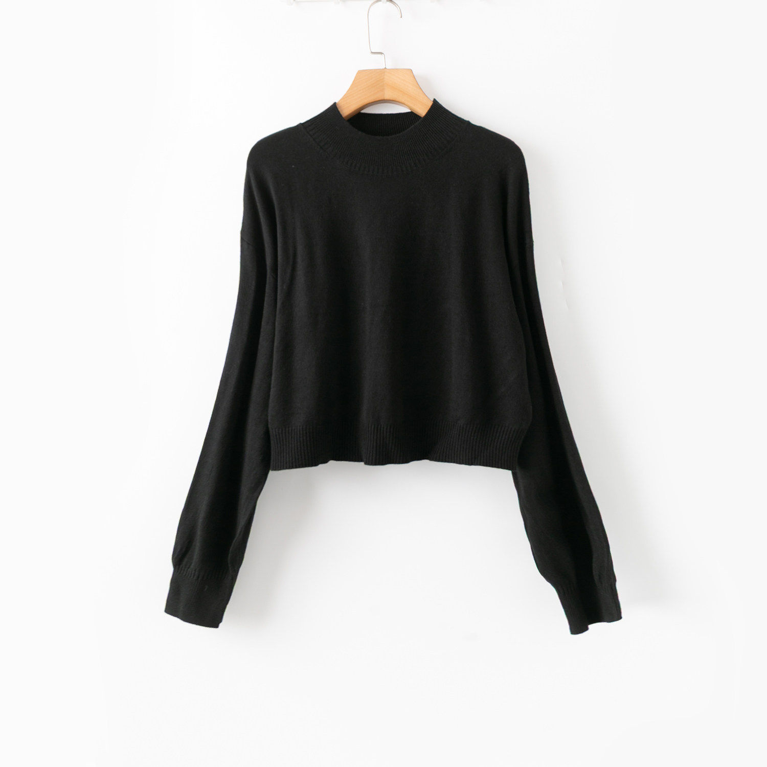9007实拍新款韩版学院风套头学生日系宽松灯笼袖线衣短款毛衣女