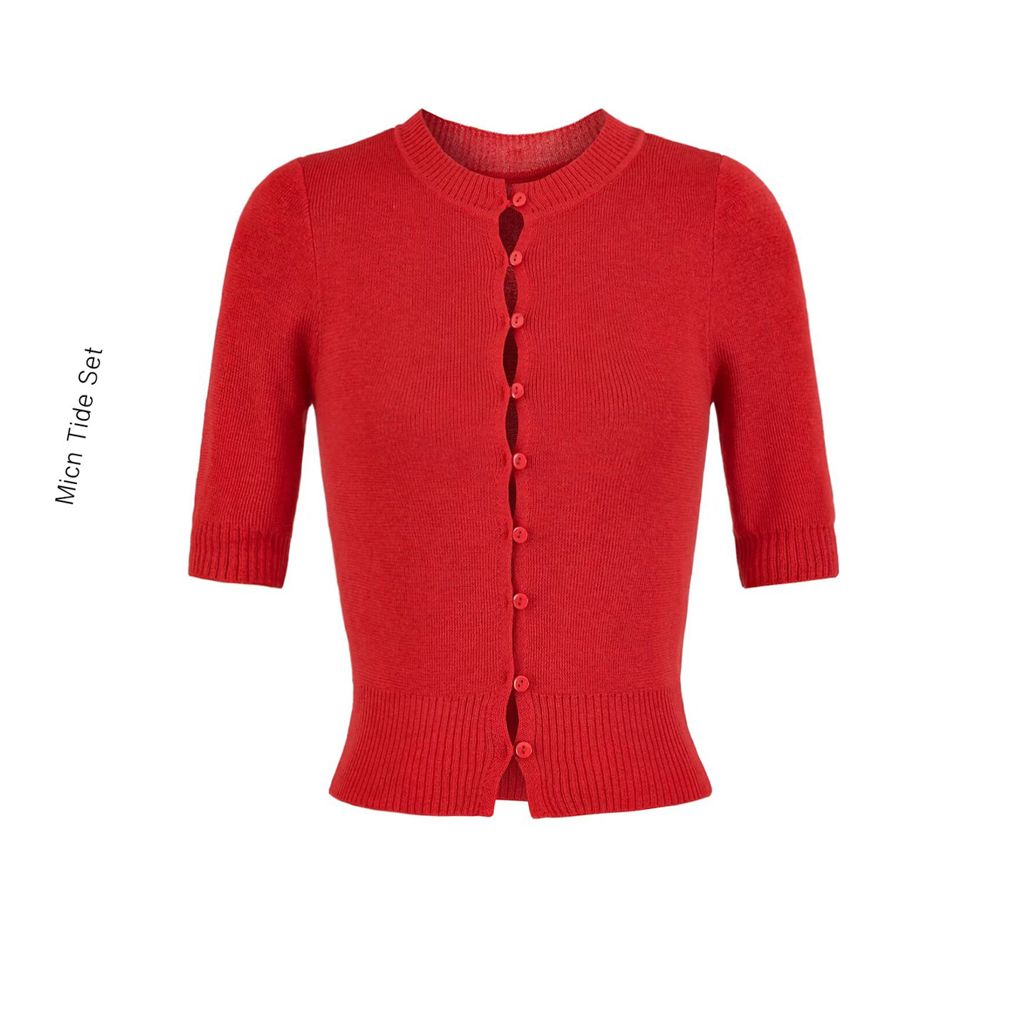 辣妹镂空短款红色新年针织衫女2026新款春季搭本命年开衫毛线衣