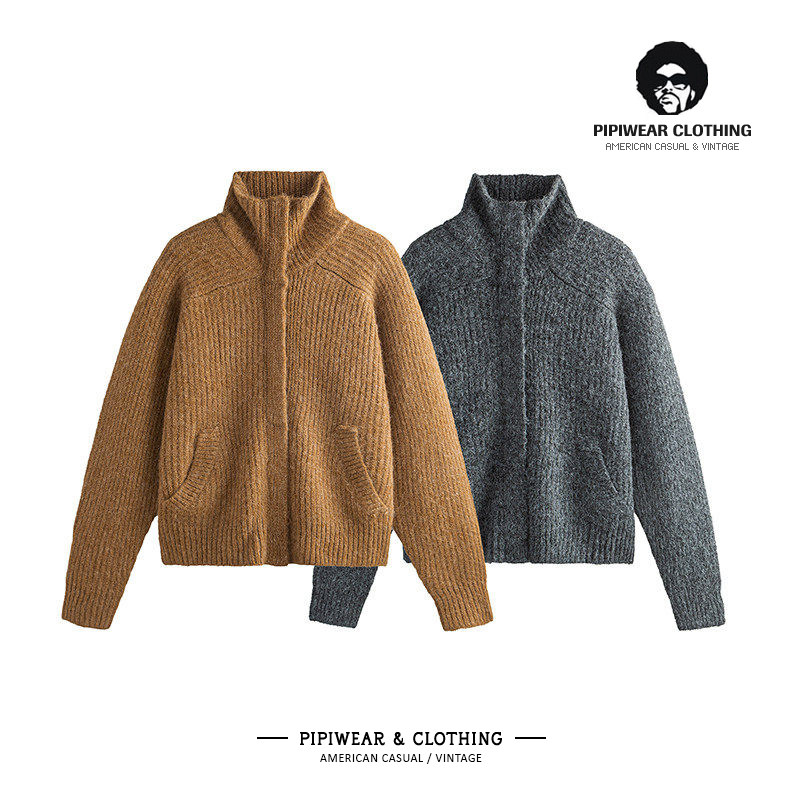 春季慵懒风立领拉链开衫毛衣男士复古短款百搭针织衫春天休闲线衫