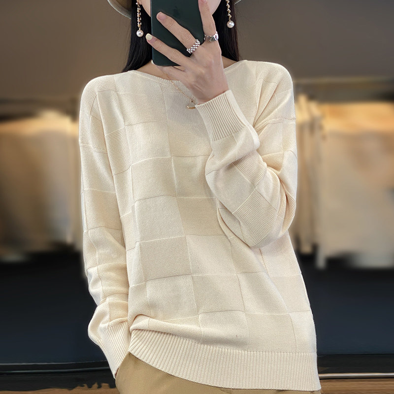 新款纯棉线长袖针织打底衫女圆领套头线衣宽松短款百搭全棉线毛衣