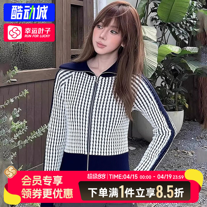 2025年新款软糯复古格纹时尚女提花开衫外套圆领短款针织上衣线衣