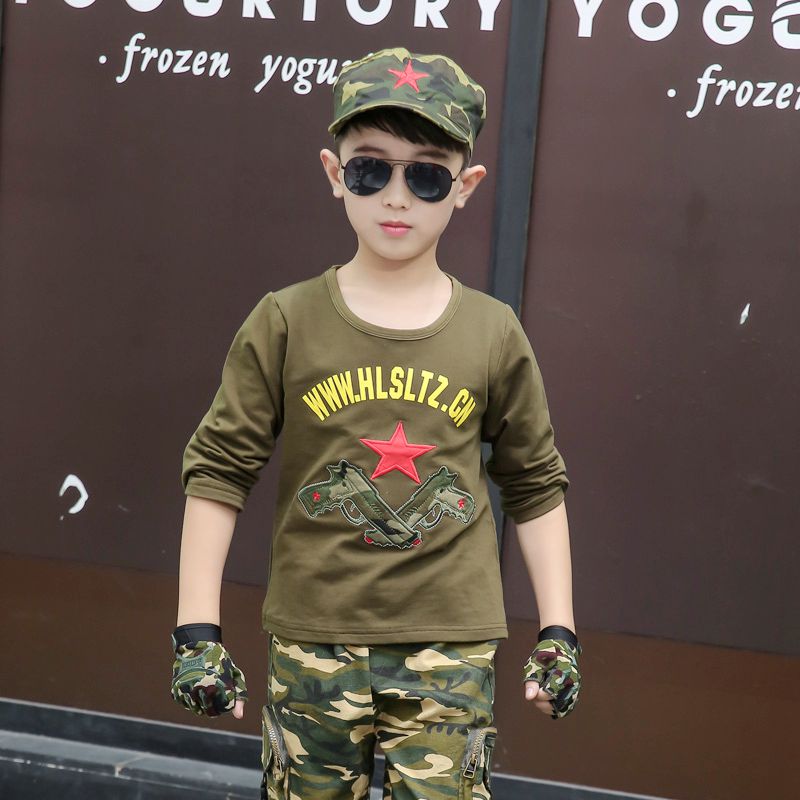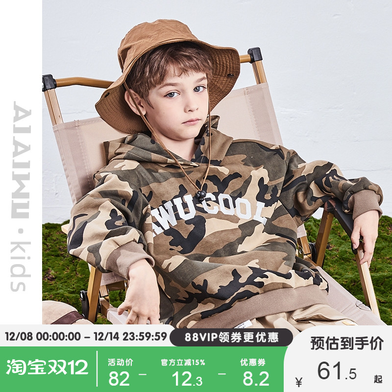 艾艾屋男童上衣春秋童装新品中大童迷彩长袖T恤潮圆领卫衣KNAD12