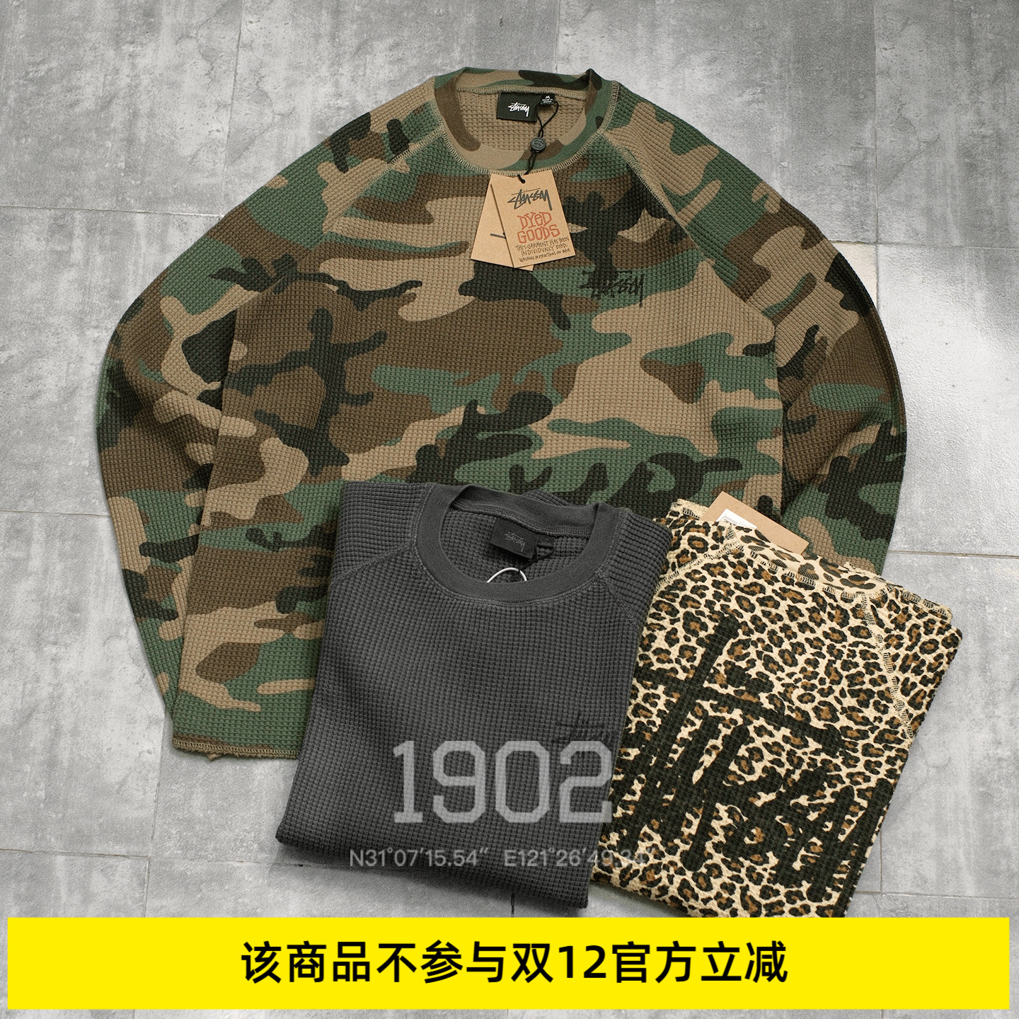 现货 STUSSY RALAN THERMAL BASIC STOCK 华夫格豹纹迷彩长袖T恤