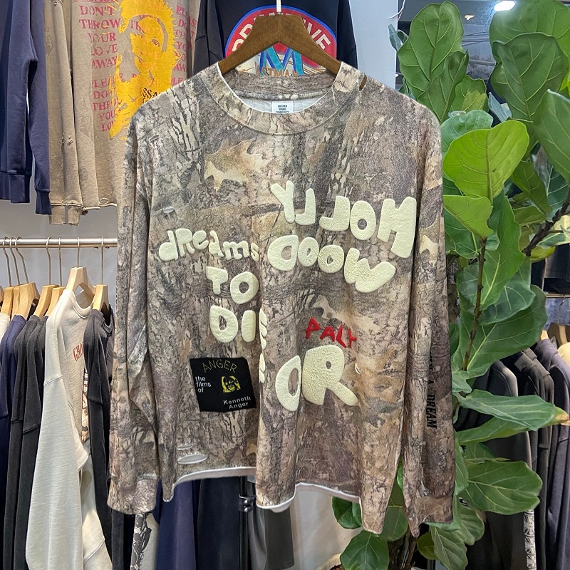 GALLERY DEPT美潮高街嘻哈字母印花宽松华夫格纯棉迷彩长袖T恤INS