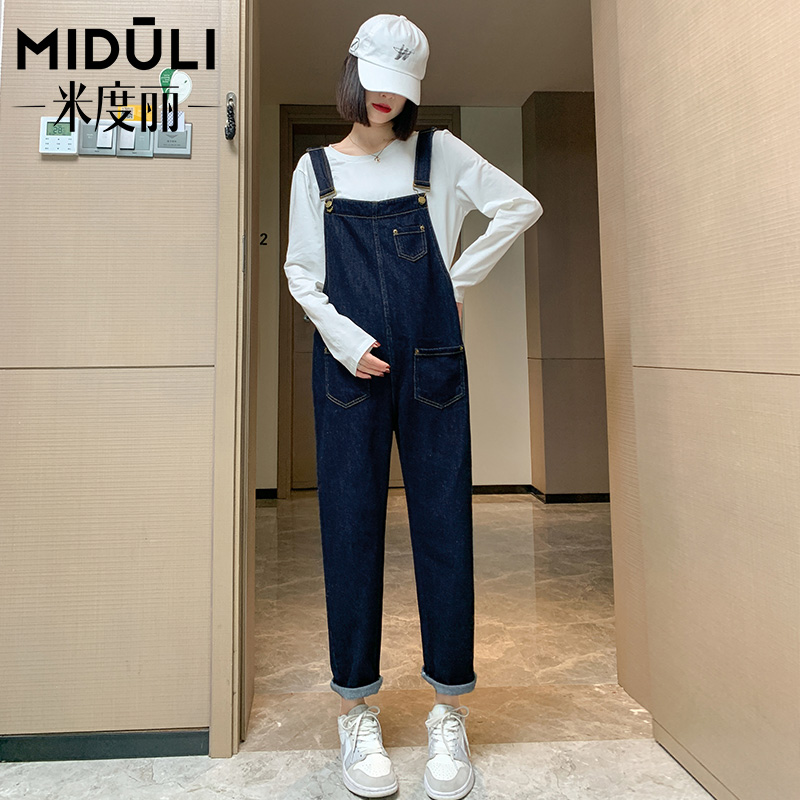 孕妇牛仔背带裤春秋款宽松大码吊带裤韩版休闲时尚减龄春季孕妇装
